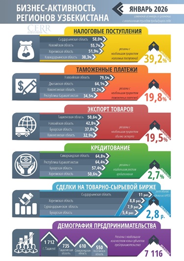 Год начался с устойчивого роста бизнес-активности регионов Узбекистана – ЦЭИР