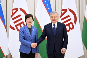 2026-02-11 55Президент Республики Узбекистан Шавкат Мирзиёев 10 февраля принял делегацию Азиатского банка инфраструктурных инвестиций во главе с его президентом Цзоу Цзяи.
